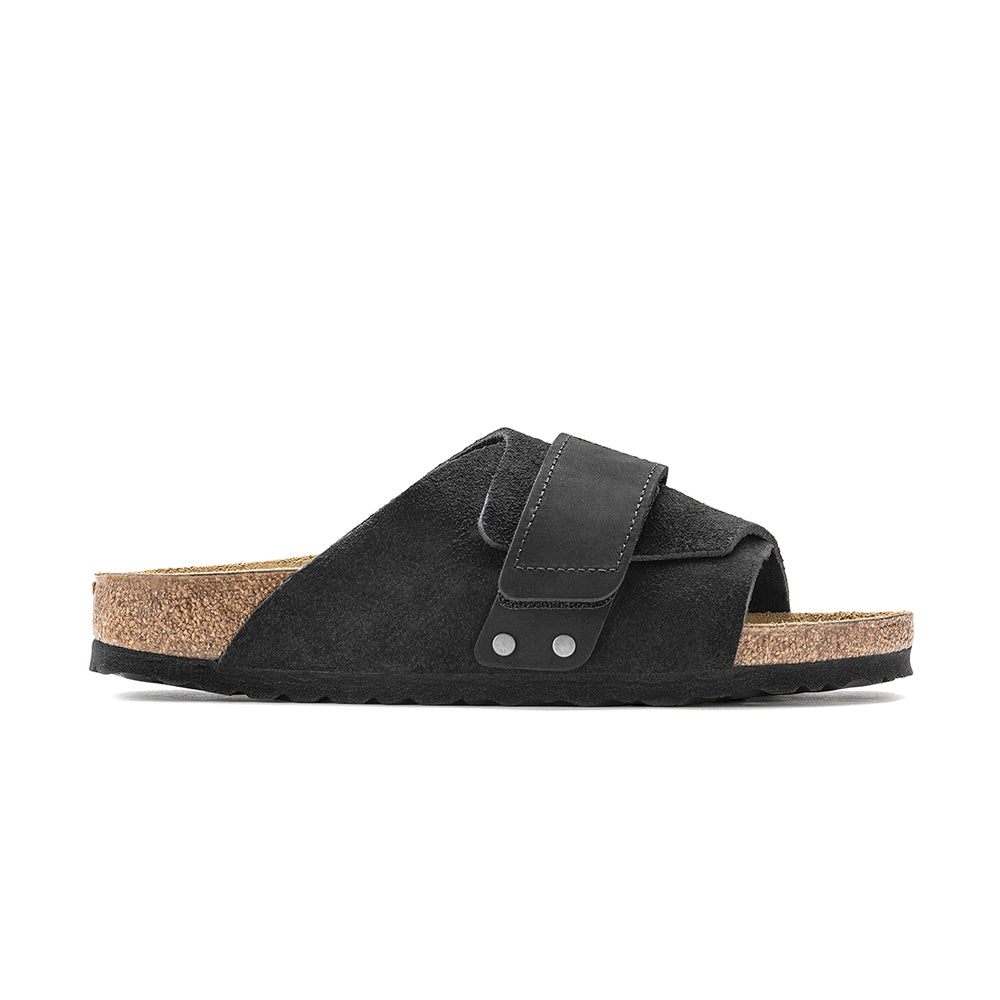 The casual BIRKENSTOCK Kyoto takes its inspiration from the classic Zürich model and stands out with its compact design and individually adjustable buckle. This offers optimum grip and is complemented by two decorative rivets. The upper is made from especially soft suede which hugs the foot like a second skin combined with high-quality nubuck leather.