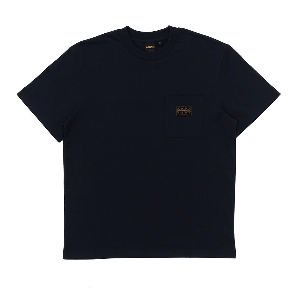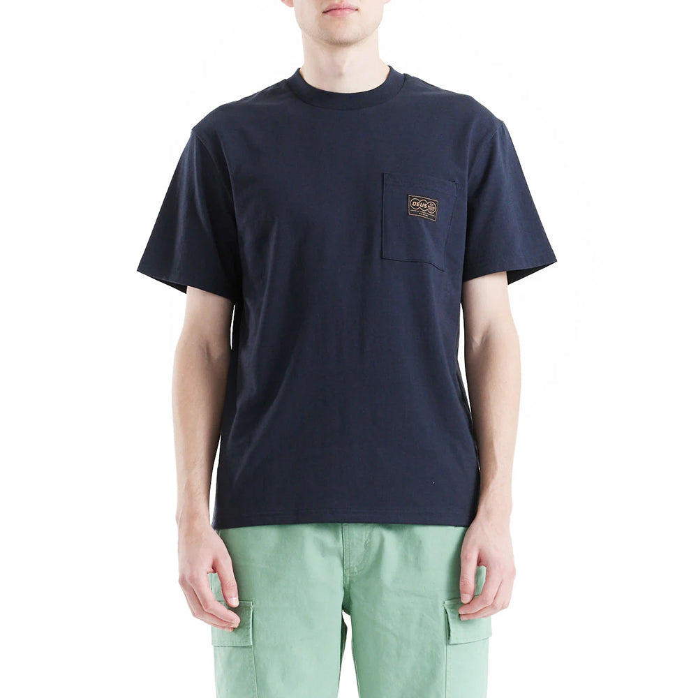 Regular fit t-shirt with branded label on chest pocket, recycled cotton and recycled polyester mix jersey fabrication with a heavy