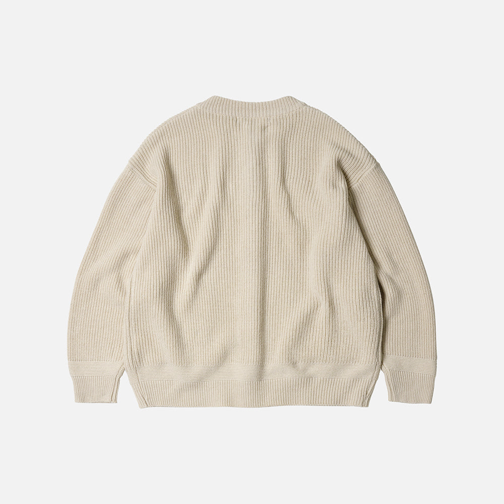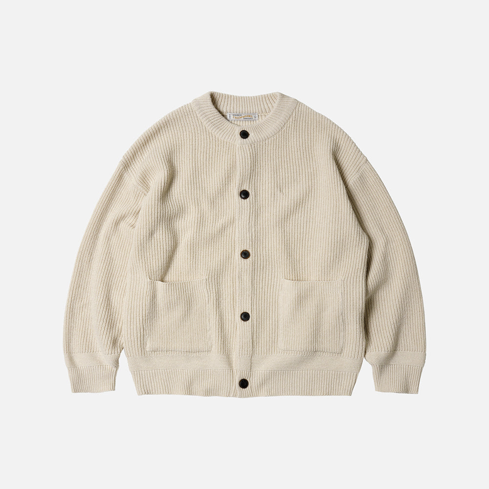 . Round neck full button cardigan, inspired by the workwear of the 50's and 60's from the streets of Korea.