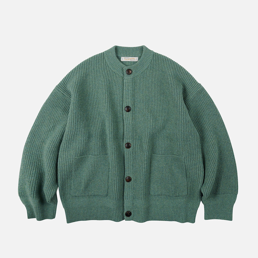 . Round neck full button cardigan, inspired by the workwear of the 50's and 60's from the streets of Korea.