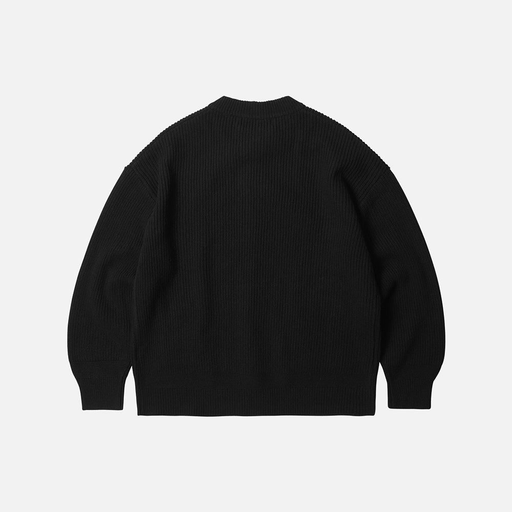 . A 60% wool fabric, with round neck and ribbed yarn detail.