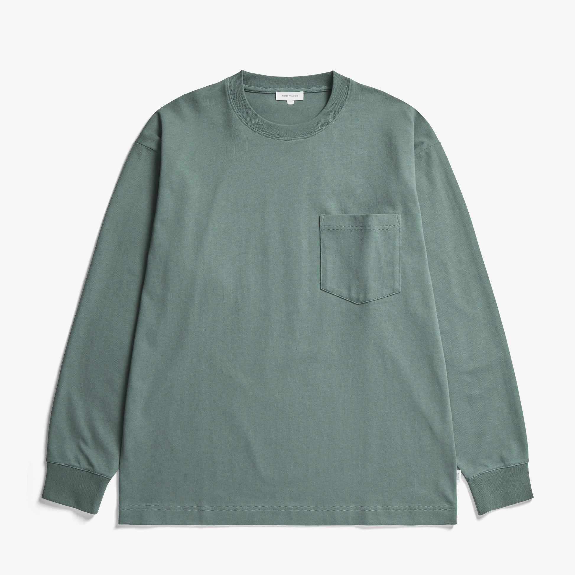 The Norse Standard Heavy Loose LS T-Shirt is made from heavyweight organic cotton, offering a loose fit. Crafted in Portugal, it features a ribbed collar, chest pocket and twin-needle stitched hem and cuffs.