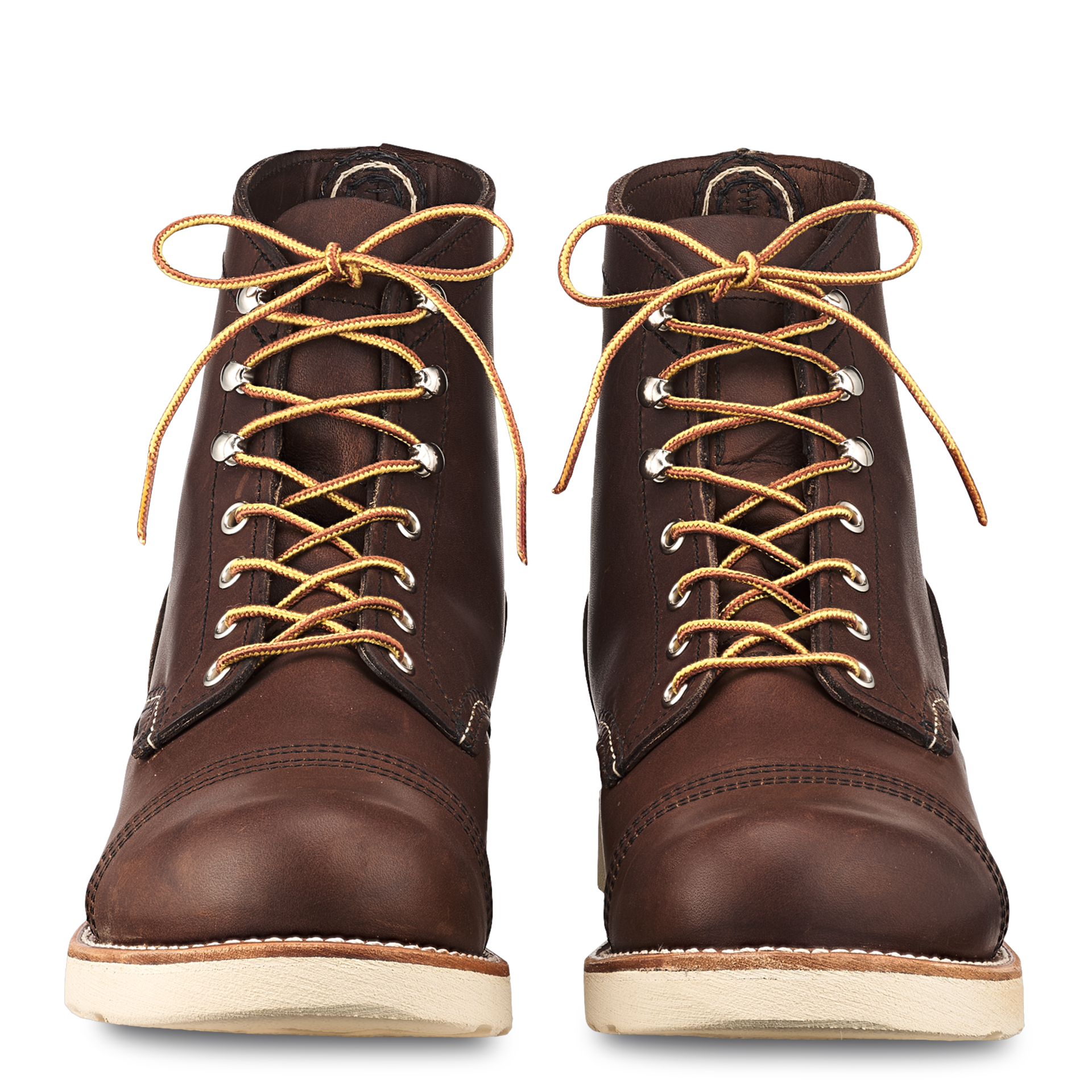 The Red Wing Shoes Iron Ranger 8088 Amber Harnes is a classic Red Wing Shoes Round work shoe and is made in Red Wing, Minnesota. The Red Wing Shoes Iron Ranger style is inspired by the Mesabi Iron Range in Northern Minnesota, a rugged area known for its iron mines. The men working in these lines where referred to as ‘Iron Rangers’, emphasising their adventurous mentality. The Red Wing Iron Ranger is easily recognised by its double leather toecap to provide an extra measure of safety. On top of that the Red Wing Iron Ranger has extra heel protection for better support. The Red Wing Amber Harness ages beautiful and all natural marks remain visible. The Red Wing 8088 Iron Ranger has a White Traction Tred outsole. The 8088 Iron Ranger comes with black/brown taslan laces.
