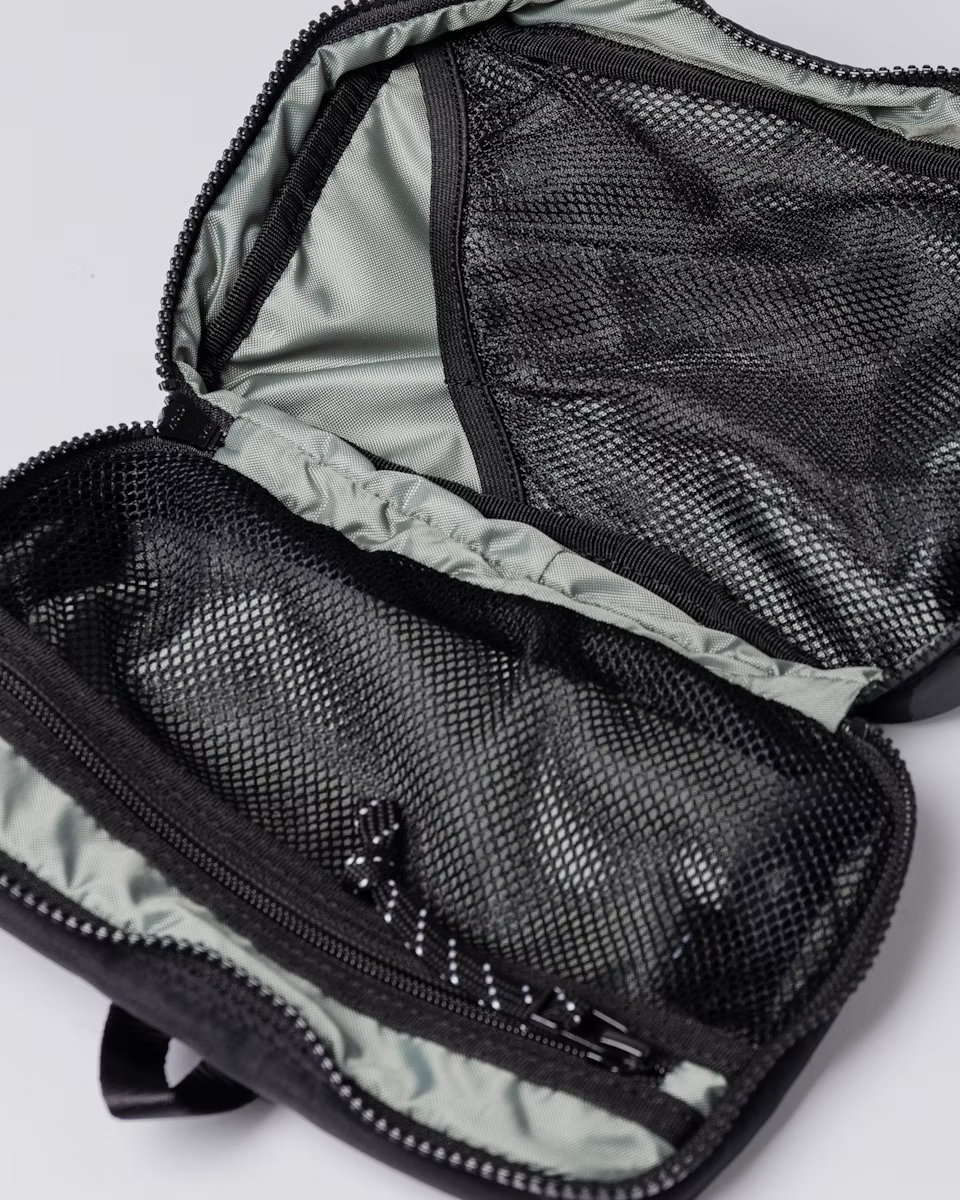 Functional washbag in 100% recycled nylon, lined with a water-resistant 100% recycled polyester that fits 3 L. The washbag features as loop hanger and is designed with a zipper all around the perimeter for easy organizing. The inside features both a mesh slip pocket and a mesh zipper pocket. The slip pocket is designed with a separated section for your toothbrush.